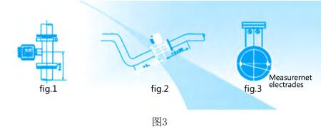 (1)測量管必須保持滿管,安裝的位置*好選在低點(diǎn)。*理想的位置(如圖1所示),流體由低往高流,或者(如圖3所示)安裝。