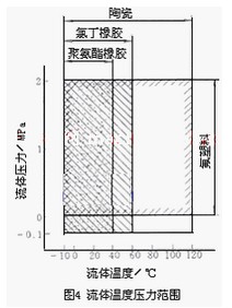 常用襯里材料有氟塑料、聚氨酯橡膠、氯丁橡膠和陶瓷等。近年有采用高純氧化鋁99.99%AI2O3)陶瓷制成襯里的,但只限中小口徑傳感器。氯丁橡膠和玻璃鋼用于非腐蝕性或弱腐蝕性液體,如工業(yè)用水、廢污水及弱酸堿,價(jià)格*為低廉。氟塑料具有優(yōu)良的耐化學(xué)腐蝕性,但耐磨性差,不能用于測量礦漿液。氟塑料中*早應(yīng)用的是聚四氟乙烯,因與測量管間僅靠壓貼,無粘結(jié)力,不能用于負(fù)壓管道,后開發(fā)各種改性品種,實(shí)現(xiàn)注塑成形,與測量管有較強(qiáng)結(jié)合力,可用于負(fù)壓。聚氨酯橡膠有*好的耐磨耗性,但耐酸堿的腐蝕性較差,它的耐磨性相當(dāng)于天然橡膠的10倍,適用于煤漿、礦漿、介質(zhì)溫度低于40~60/70℃的場合。氧化鋁陶瓷有*好的耐磨耗性和對強(qiáng)酸堿的耐磨腐蝕性,耐磨性約為聚氨酯橡膠的10倍,適用于具有腐蝕性的礦漿,但性脆,安裝夾緊時(shí)易碎,可用于較高溫度(120~140/180℃)但要防止溫度劇變,如通蒸汽滅菌,一般溫度突變不能大于100℃,升溫150℃ 要有10min時(shí)間。 通用型EMF幾種材料的壓力、溫度大體適用范圍可參閱下圖。