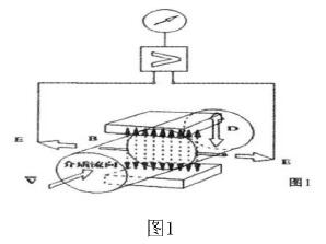 當導電流體經傳感器通道時,導電流體流向垂直于磁力線方向,流體流動時切割磁力線,在導電流體中有感應電勢E產生,感應電勢與流速之間的關系式為:E=KBvD