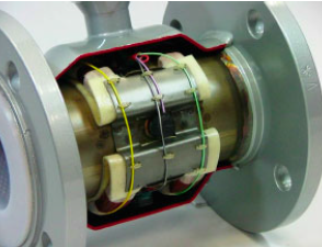 其中B、D、S為常量,流量與感應(yīng)電動(dòng)勢(shì)U成正比關(guān)系,因此,測(cè)得感應(yīng)電動(dòng)勢(shì)U,即可得到流體流量。