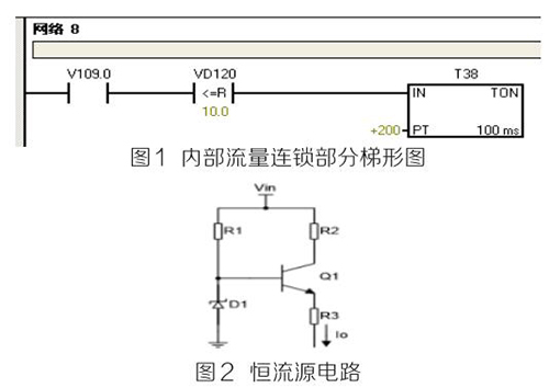 (2)PLC及模塊。PLC及模塊是自動化控制系統(tǒng)主要設(shè)備,且PLC及模塊屬于高集成高精密電子設(shè)備,保持室內(nèi)整潔舒適,可以提高自動化系統(tǒng)運行穩(wěn)定性。PLC及模塊硬件運行可靠,內(nèi)部控制程序是其控制核心軟件,如PLC硬件出現(xiàn)故障或損壞一般直接更換,但原內(nèi)部控制軟件無法上傳,整個控制系統(tǒng)成失控狀態(tài)。所以其內(nèi)部控制程序在調(diào)試驗收合格后應(yīng)及時備份并做好標(biāo)記,為以后修復(fù)PLC故障提供保障。PLC系統(tǒng)的維護(hù)技術(shù)人員需掌握一定基礎(chǔ)PLC控制邏輯原理,對準(zhǔn)確判斷PLC故障點有很大的幫助。例如選礦廠水泵房S7-200系列PLC自動抽水系統(tǒng)出現(xiàn)如下故障 :觸摸屏能控制變頻器啟動水泵抽水,但在短時間內(nèi)會自動停泵,導(dǎo)致無法正常抽水。通過故障現(xiàn)象可初步判斷PLC及模塊硬件設(shè)備正常,主要由于某個變量有問題導(dǎo)致連鎖停機(jī)。打開備份PLC控制梯形圖程序進(jìn)行相關(guān)分析,原來是排污流量計瞬時流量數(shù)值做了連鎖,其在一定時間內(nèi)瞬時流量不大于10m 3 /h時,自動停泵,電磁流量模擬量輸出電流值僅為4ma且無變化,確定排污流量計有故障??膳R時應(yīng)急維修,模擬量模塊輸入模擬電流值10ma~20ma之間一固定數(shù)值即可恢復(fù)正常運行。制作簡單恒流源電路代替排污流量計輸出的模擬電流量,實現(xiàn)解決水泵無法正常運行的故障。