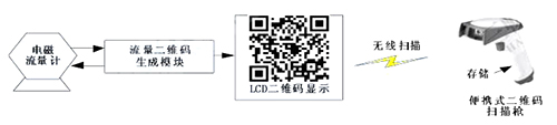 二維碼生成模塊定時(shí)向供熱補(bǔ)水流量計(jì)發(fā)送采集指令,后者收到指令后發(fā)送流量數(shù)據(jù)。