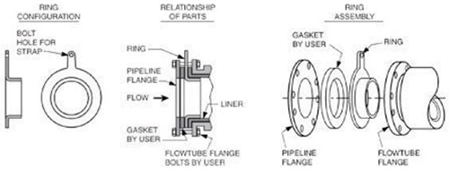 圖6.安裝在非金屬管道中的玻璃水流量計晶片式流量管(未顯示螺栓)。