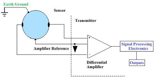 在典型的脈沖直流磁力計中,流量信號連接到差分放大器,該差分放大器與變送器外殼電氣隔離。接地過程為該差分放大器提供了穩(wěn)定的參考。