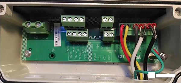 一體型流量計傳感器與轉(zhuǎn)換器間的接線由制造廠完成,本節(jié)內(nèi)容僅適用于分離型流量計。分離型流量計傳感器與轉(zhuǎn)換器間的連線采用STT3200電纜,STT3200電纜含4芯,2芯為各有兩層屏蔽的同軸線,另2芯為聚氯乙烯絕緣軟線。4芯線外還有一外層屏蔽。同軸線的內(nèi)層屏蔽為金屬絲編織網(wǎng)狀屏蔽,其余2層屏蔽為帶有泄漏線的箔層屏蔽。需要的別說明的是,僅靠同軸線的內(nèi)層屏蔽里邊尚有一層黑色半導體層,接線時須將其細心剝?nèi)ァ赏S線的兩根屏蔽泄漏線在接線時須絞合并套上套管。