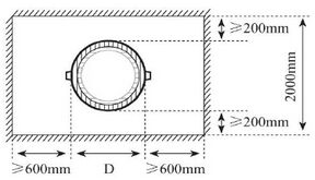 只有當(dāng)安裝空間不夠時(見下圖),小于DN200mm的管道可以選用V法安裝,大于DN200mm的管道可以選用平行插入超聲波流量計(jì)。