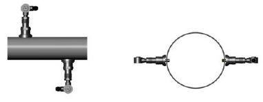 安裝管道材質(zhì)為碳鋼時可直接焊接安裝,對于不可直接焊接管材(如鑄鐵、水泥管等),需采用定制的專用管箍(帶密封膠墊),球閥底座已事先焊在管箍上,將管箍直接緊固到被測管道上。焊前必須將焊點(diǎn)附近的管道表面處理干凈,焊接時注意一定不要夾雜氣孔,以防漏水,甚至斷裂。