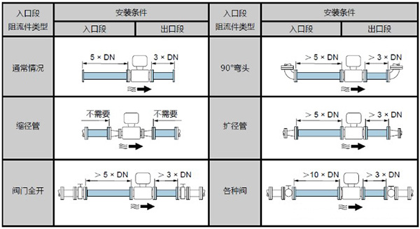 管路必須完全充滿液體。保證管路始終充滿液體至關(guān)重要,否則流量顯示會受到影響,而且還會出現(xiàn)測量錯誤。管路結(jié)構(gòu)的設(shè)計必須要保證測流管始終充滿流體。當流體有分流或含有固體顆粒沉淀物時,建議使用垂直安裝。但采用垂直安裝時,要遵循流體從下到上的走向,以保證管路充滿流體。