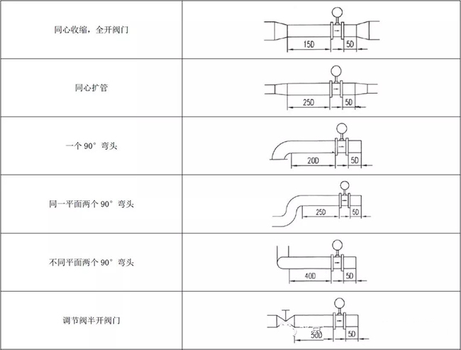 1)測量混合相流體時,選擇不會引起相分離的場所;測量雙組分液體時,避免裝在混合尚未均勻的下游;測量化學反應管道時,要裝在反應充分完成段的下游;