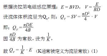 設:E為感應電動勢;B為感應強度(T);D為測量管內徑(m);V為平均流速(m/s);S為管道截面積;K為流量常數(shù)