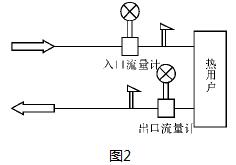 (2)雙表計量:使用兩個流量計,兩個鉑電阻,一個熱量積算儀。如圖2所示。