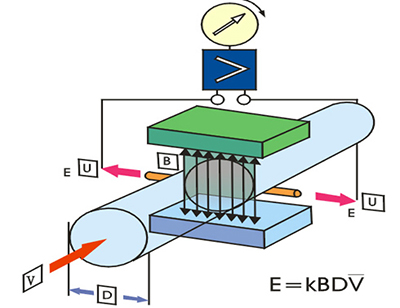 由于K為常數(shù),勵磁電流是恒流的,故B也是常數(shù),則由(1-1)式可知,體積流量Q與信號電壓E成正比,即流速感應(yīng)的信號電壓E與體積流量Q成線性關(guān)系。因此,只要測量出E就可確定流量Q,這就是電磁流量計(jì)的基本工作原理。