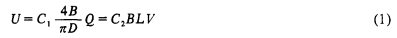 式中:B為磁感應強度大??;C1,C2為轉換系數(shù);D為測量管內徑;L為磁場中作垂直切割磁力線方向運動的導體長度。