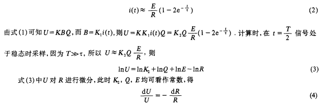 對于銅電阻,R=R0【1+a(T-T0)】。其中:i(t)為信號電流;E為電壓源幅值;R為銅電阻值;τ為時間常數(shù);K,K1,K2為變換系數(shù);T為激磁信號周期;a為銅電阻溫度系數(shù)a=3.93×10-3/℃。