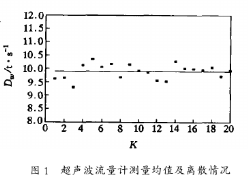 評(píng)價(jià)測(cè)量結(jié)果好壞的指標(biāo)是其觀測(cè)數(shù)據(jù)精度的大小,亦即要求觀測(cè)結(jié)果的離散程度應(yīng)該盡可能小。圖1、圖2分別表示對(duì)同樣運(yùn)行工況下同時(shí)采用超聲波流量計(jì)和凝汽器熱平衡方法得到的冷卻水流量測(cè)量值及其相應(yīng)的均值。其中,k為測(cè)量點(diǎn)數(shù)。