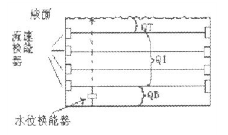由(3)式可見,只要測出正逆向的傳播時間T1、T2就可以計算出水的流速,進而求得流量。但是根據(jù)(3)式求得的流速是超聲波傳播路徑上的線平均流速,由于在一個渠道的水流斷面上,各處的流速并不相同,因此僅用一個聲路計算流量將會產(chǎn)生很大的誤差。為提高測量精度,我們在明渠斷面的不同高度上設置了四路換能器下圖,構(gòu)成多個測量聲路,從而測出水流斷面上的多層流速。同時還設一個水位換能器,這樣流量計中的計算機可以根據(jù)測得的流速和水位準確地計算出流量Q。為了及時了解流量計的運行情況和檢測數(shù)據(jù),通過RS232數(shù)據(jù)接口和RS485接口,將數(shù)據(jù)傳給“893”網(wǎng),供調(diào)度系統(tǒng)和相關(guān)部門使用。